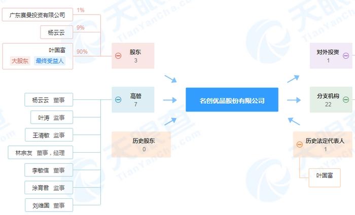 曾經(jīng)的“哎呀呀”已經(jīng)成了時代的眼淚,但在2013年,一個更強(qiáng)的名創(chuàng)優(yōu)品誕生了。天眼查顯示,名創(chuàng)優(yōu)品股份有限公司(簡稱“名創(chuàng)優(yōu)品”)的曾用名是哎呀呀飾品連鎖股份有限公司(簡稱“哎呀呀”),大股東、最終受益人是葉國富,其持股比例高達(dá)90%。