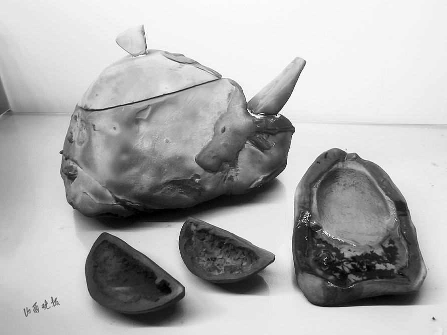 日前,在陽泉市古生物化石保護(hù)協(xié)會的會員線下交流活動中,71歲的奇石愛好者任富材將家中收藏的大量觀賞石標(biāo)本展示出來。他收藏陽泉觀賞石及化石已有50余年,他的收藏包含各種地質(zhì)巖石標(biāo)本:靈璧石、木魚石、煤核石、木化石、海螺化石、方解石、瑪瑙石、鈣質(zhì)結(jié)核等,琳瑯滿目。在這些藏品中,一種褐鐵礦結(jié)核——木魚石,頗為引人注目,這些石頭被任富材制作成了硯臺、茶壺、石函、擺件等精美工藝品。任富材說,在《山西中藥典》一書中記載的禹余糧,其實就是木魚石,別名又叫“太一余糧”“石中黃子”,俗稱“還魂石”“鳳凰蛋”,有著吉祥如意的寓意,被民間爭搶收藏。眾多礦石愛好者對任富材的這些木魚石藏品產(chǎn)生了濃厚的興趣,也對陽泉本地木魚石的儲量、特性、成分等打起了問號。