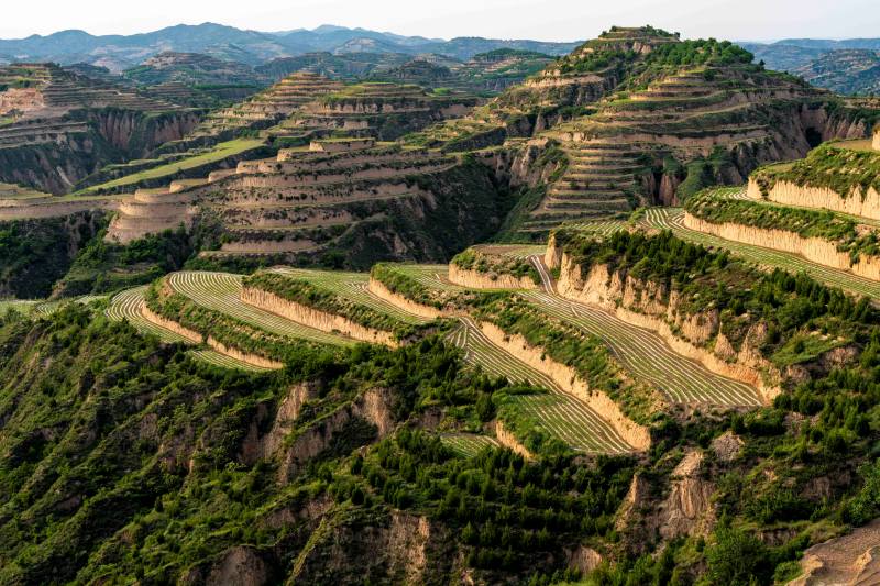 為了實(shí)現(xiàn)耕地有效利用,從2010年起,永和縣在芝河源頭的高山上開始了“坡改梯田”工程。