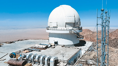 墨子巡天望遠鏡坐落于青海省海西蒙古族藏族自治州茫崖市冷湖鎮(zhèn)賽什騰山,海拔4200米左右。這里觀測條件好,光污染極低,視寧度(望遠鏡顯示圖像的清晰度)中值為0.75角秒,與國際最佳臺址同期數(shù)據(jù)大致相同,是可以媲美智利北部山區(qū)、南極內(nèi)陸冰穹地區(qū)的一流光學(xué)觀測基地。