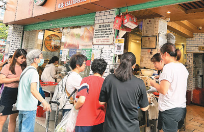 粽子熱氣騰騰地出鍋,門外擠滿了排隊(duì)的本地市民、外地游客……位于深圳蛇口市場門口的嘉華小吃店,店面不大,但人氣很旺?!八恤兆拥陜?nèi)現(xiàn)包,高峰期4個(gè)‘粽子工’從早到晚忙不停,一天賣出好幾千個(gè)。”店主葉向家說。憑借父輩傳授的裹粽手藝,葉老板從推車擺攤開始,將嘉華小吃店做成一家20年老店,如今又登上了“必吃榜”。