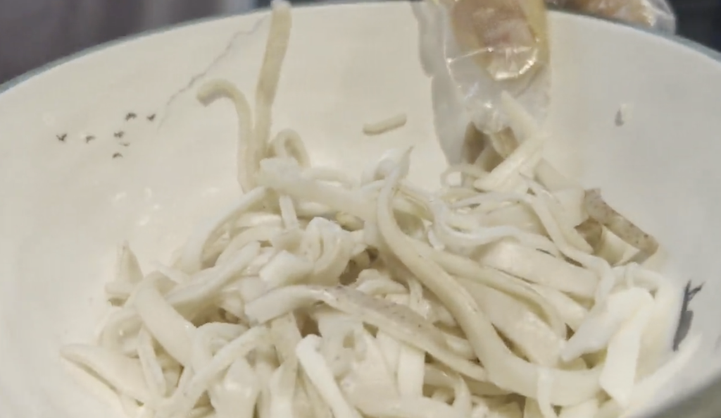 圖為剪刀面制作過程。新華社記者 王怡靜 攝??關于“清徐沾片子”則是一個節(jié)儉的故事。沾片子是一種以各種蔬菜蘸面煮食的面食,也被稱為菜疙瘩、蘸尖尖或拖葉子。為了避免浪費家里剩的面粉、蔬菜,農(nóng)民們下地干活兒前,會將各種蔬菜切成薄片,然后用面粉和水調成的面糊包裹,放入水中煮熟。以前沒有太多可食用的蔬菜,“沾片子”多用玉谷葉或其他野菜,現(xiàn)在則出現(xiàn)了“沾豆角”“沾土豆”“沾茄子”等新吃法。