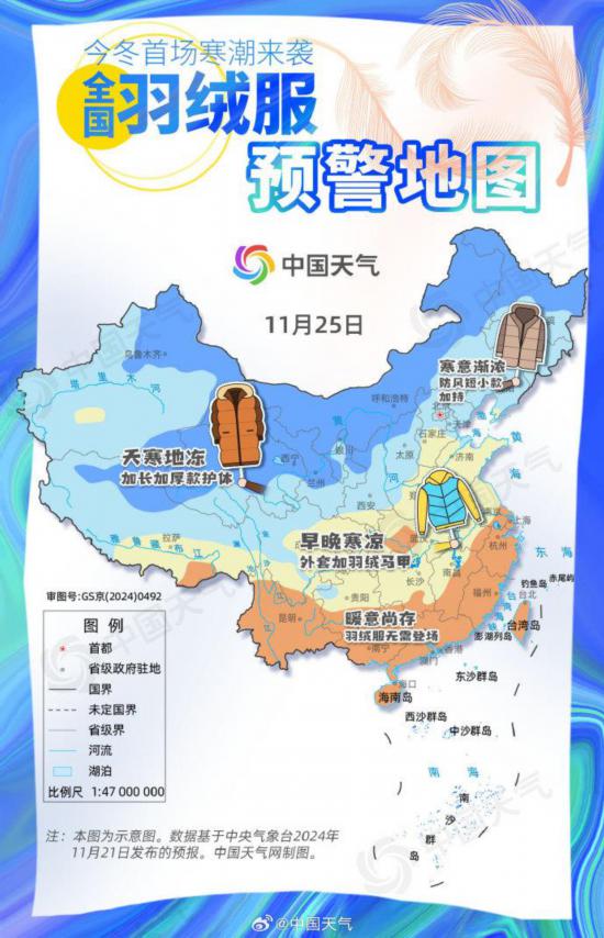 從南到北都要穿:全國羽絨服預警地圖出爐