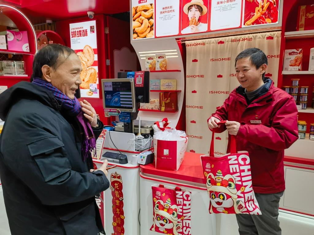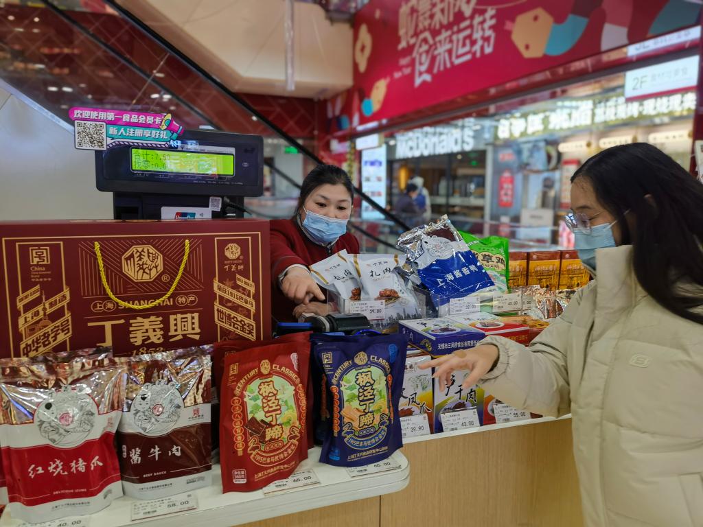 新華社上海1月20日電(記者陳愛平)走進(jìn)位于南京路步行街的第一食品商店,喜慶紅火的新春裝飾、琳瑯滿目的非遺美食、排隊(duì)精挑細(xì)選年貨的顧客、笑著稱重裝袋的售貨員……過年的幸福感在掀開擋風(fēng)門簾瞬間“拉滿”。