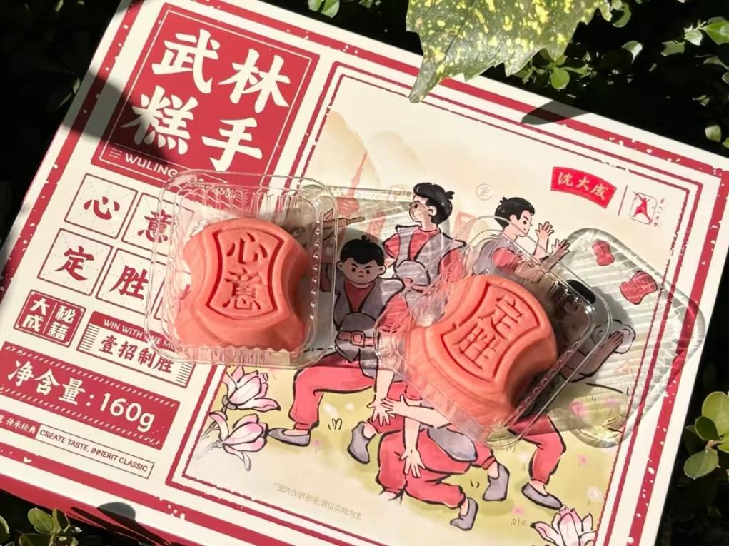 非遺傳承人們也不再滿足于“守住老味道”,更在努力跨界融合、推陳出新。沈大成最新推出的“武林糕手”心意定勝糕,內(nèi)里仍是銀錠造型、香甜軟糯的糕點(diǎn),外包裝設(shè)計(jì)則引入了國(guó)家級(jí)非遺項(xiàng)目盧氏心意拳的招式形象,受到消費(fèi)者的歡迎。