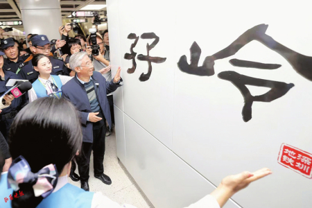 崗廈北站是深圳交通網(wǎng)絡中的重要節(jié)點,設計獨具匠心,通過天井將陽光引入地下,科技感和藝術性兼具,被譽為“深圳之眼”。在崗廈北站樞紐的“深圳之眼”下,姥爺即興揮毫,寫下“情滿鵬城”“厚德載運,深鐵為民”。墨跡未干,照片已登上熱搜。