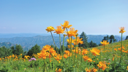 毛茛科金蓮花屬多年生草本植物,有“旱地蓮”“金芙蓉”之稱(chēng)。不僅具有極高觀賞價(jià)值,還可入藥。每年盛夏,駝梁等地的金蓮花連片綻放,是五臺(tái)山標(biāo)志性生態(tài)景觀。
