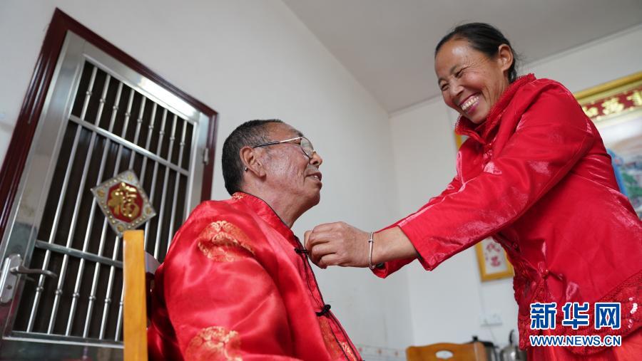 即將拍照的劉仁香替丈夫賴際林整理衣服(1月22日攝)。 江西省吉安市萬安縣夏造鎮(zhèn)橫江村地處一隅,曾是“十三五”貧困村。2021年農(nóng)歷新年來臨之際,為了給脫貧摘帽的百姓帶去特殊的問候,當?shù)卣匾庋垟z影師,計劃為20多對從未拍過婚紗照的夫妻免費上門補拍婚紗照。 59歲的劉仁香和64歲的賴際林是第五對參與補拍婚紗照的夫婦。2010年,賴際林從事體力勞動時不慎腰椎、脊椎神經(jīng)受損,下半身基本癱瘓,失去了勞動能力。為了治好賴際林的病,全家?guī)缀跤帽M了所有積蓄,2014年,夫婦二人成了村里建檔立卡貧困戶。 妻子劉仁香一人挑起了家中的重擔,她一邊照顧丈夫,一邊靠種菜和養(yǎng)殖家禽補貼家用,政府提供各方面的幫助,為她安排了鄉(xiāng)村護林員的崗位。2016年,劉仁香和丈夫終于成功脫貧摘帽,迎來了新生活。 1986年結(jié)婚時,劉仁香和賴際林與家里十幾口人擠在不到90平方米的土坯房內(nèi)生活,“想吃頓好的都很難,相機都沒見過,現(xiàn)在日子越來越好,在這個歲數(shù)還能補上一張婚紗照,還是非常吉利的”,劉仁香說。 (責任編輯:梁艷) |