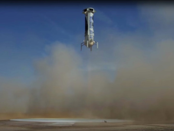 這張2016年6月19日的視頻截圖顯示,美國藍(lán)色起源公司“新謝潑德”火箭準(zhǔn)備在美國得克薩斯州范霍恩附近的試驗(yàn)場著陸。(新華社/美聯(lián))