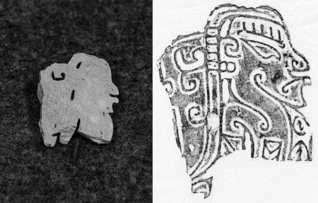 其中一件玉石上陽刻的側(cè)身人像,頭戴冠帽、橄欖形眼、高鼻梁、大嘴巴,生動(dòng)的形象和精美的工藝與長江中游后石家河文化中的玉人(神)像如出一轍。