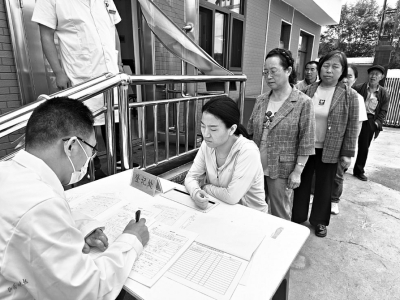 “有沒有基礎疾?。俊薄坝袥]有過敏史?”“早上吃飯了沒?”……8月20日10時,在靜樂縣杜家村鎮(zhèn)中心衛(wèi)生院的門口,等著要體檢的村民們已經(jīng)排起了長隊。