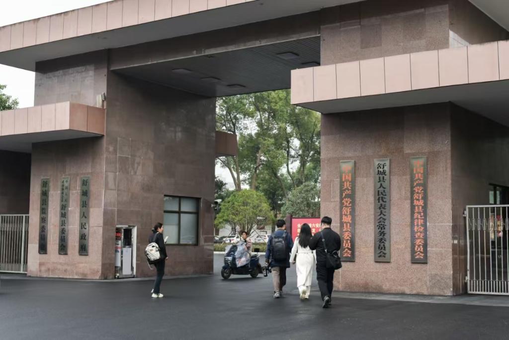 因為工作關系,記者常進出舒城縣政府。這里大院的門樓不高,雖安有伸縮門,但大部分時候是敞開的。除了工作人員進出,不少前來辦事的市民、外賣小哥等都可自由出入。