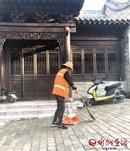 圖為環(huán)衛(wèi)工人在忻州古城清理街面垃圾
