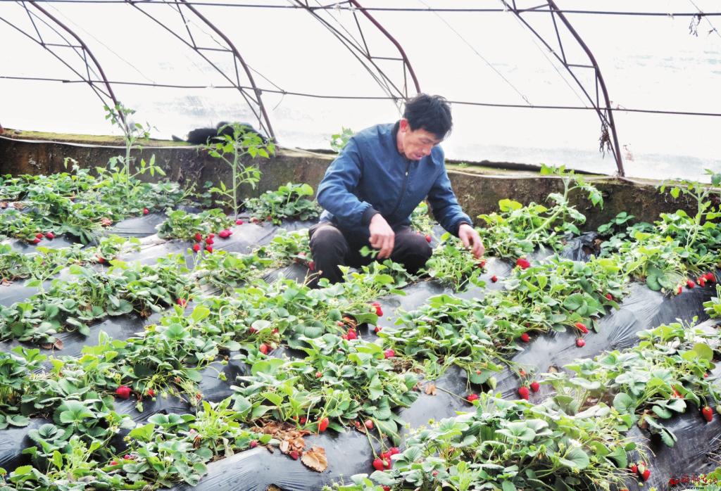 3月22日,孫元寶正在河曲縣文筆鎮(zhèn)南元村瓜果園區(qū)的元寶草莓園內(nèi)忙活??恐h的富民政策和自己勤勞的雙手,他的3畝大棚年收入可達(dá)8萬(wàn)元左右。 (袁保明 攝)
