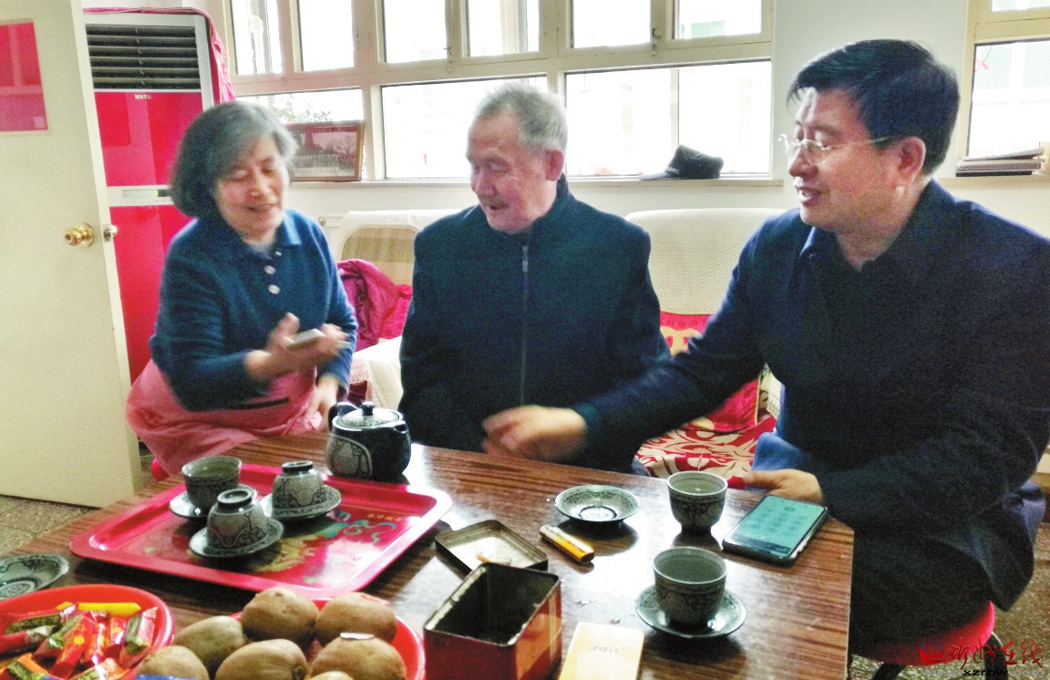初心如長風(fēng),鼓起帆船;使命如燈塔,引領(lǐng)征程。在喜迎建黨100周年之際,4月2日,定襄縣委常委、組織部長華永軍深入南關(guān)村看望53年黨齡老黨員、年過古稀的退休干部續(xù)佩山和他妻子侯春全,學(xué)黨史、憶初心、感黨恩。 (郭 健 攝)