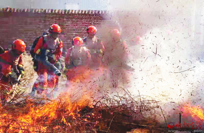 4月14日,新疆森林消防總隊(duì)山西駐防隊(duì)伍在忻府區(qū)高城鄉(xiāng)駐地,以轄區(qū)發(fā)生森林火災(zāi)為模擬場(chǎng)景,組織人員開(kāi)展實(shí)戰(zhàn)滅火演練,進(jìn)一步提升隊(duì)伍戰(zhàn)斗能力。 (許寧寧 攝)