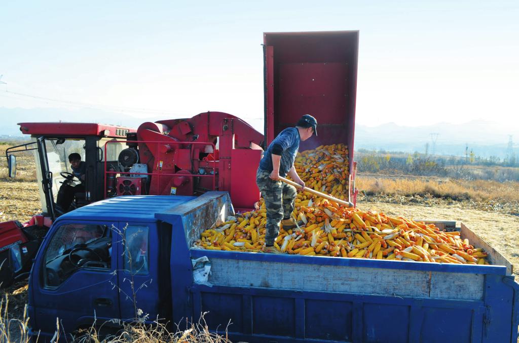 五臺縣東冶鎮(zhèn)北一村積極推進(jìn)土地確權(quán)流轉(zhuǎn),使外出村民棄耕和管理不善的土地向種田能手集中。村民王春明流轉(zhuǎn)土地800畝,并購置了大型農(nóng)機(jī)具,進(jìn)行科學(xué)種植,實(shí)現(xiàn)了增收致富。圖為王春明利用收割機(jī)搶收玉米,保證顆粒歸倉。 (王金龍 攝)