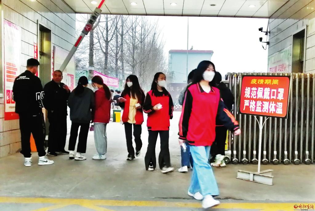 規(guī)范佩戴口罩,嚴(yán)格監(jiān)測(cè)體溫。忻州市高級(jí)技術(shù)學(xué)校門(mén)口豎著一塊醒目的牌子,溫馨提示學(xué)校師生要做好疫情防護(hù)。 (記者 李 濤攝)