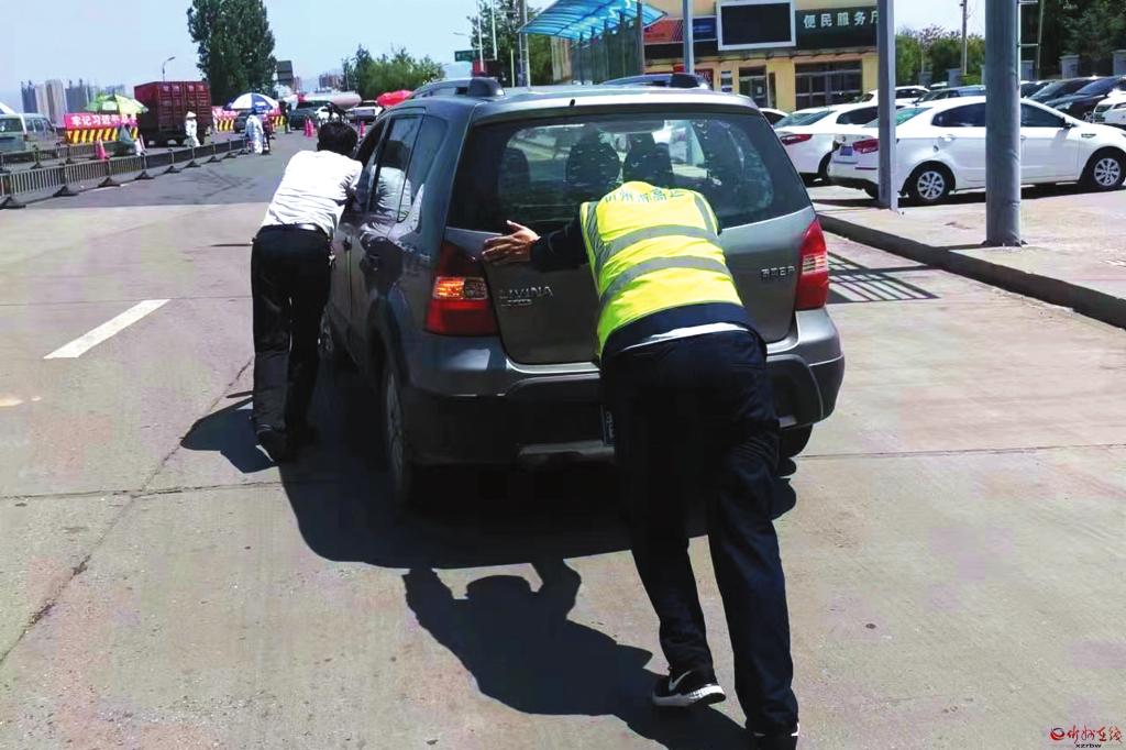 6月5日上午,忻州收費(fèi)站出口處由于有車輛故障而出現(xiàn)堵塞。當(dāng)班班長劉鈞迅速行動(dòng),幫助司機(jī)將故障車輛推至安全區(qū)域,并聯(lián)系了附近修理廠,叮囑司機(jī)在行車前注意檢查車輛,及時(shí)消除隱患,確保安全行車。(李瑞軍 趙旭霞攝)