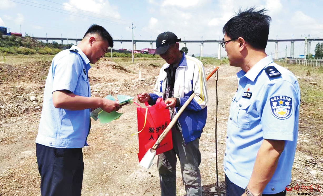 連日來,五寨火車站派出所精心組織、全力投入,防范和嚴(yán)厲打擊各類違法犯罪活動(dòng),深入開展線路隱患排查整治活動(dòng),確保線路安全暢通。圖為民警在李家坪村對(duì)放牧戶進(jìn)行法治宣傳教育。(索效光 攝)