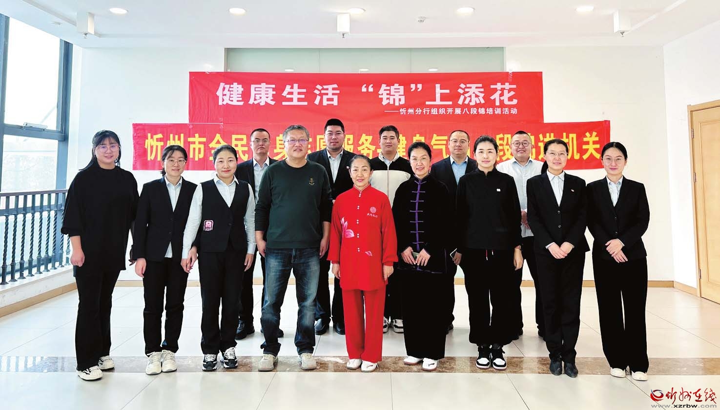 為進(jìn)一步豐富員工的業(yè)余文化生活,提升員工的身心健康水平,同時(shí)增強(qiáng)團(tuán)隊(duì)合作意識(shí)、促進(jìn)員工之間的交流,11月4日至8日,山西銀行忻州分行舉辦了“健康生活 ‘錦’上添花”八段錦培訓(xùn)活動(dòng)。(秦浩東攝)