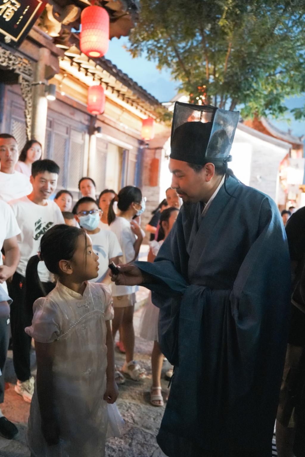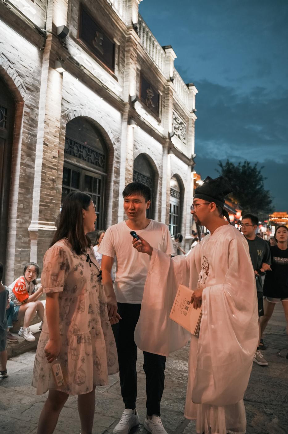游客在忻州古城與“元好問(wèn)”、“秀容先生”吟詩(shī)作賦。源自忻州古城公眾號(hào)