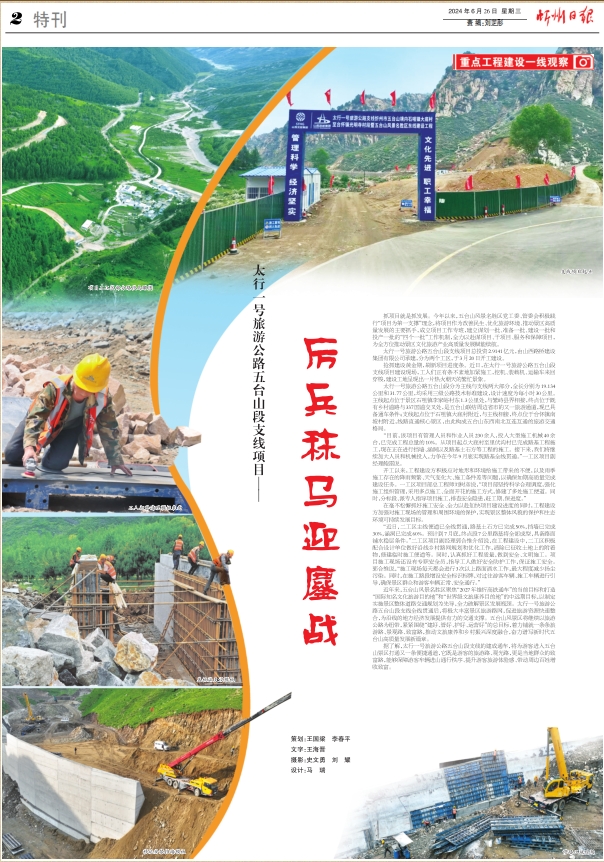 搶抓建設(shè)黃金期,刷新項(xiàng)目進(jìn)度條。近日,在太行一號(hào)旅游公路五臺(tái)山段支線項(xiàng)目建設(shè)現(xiàn)場(chǎng),工人們正有條不紊地加緊施工,挖機(jī)、裝載機(jī)、運(yùn)輸車來(lái)回穿梭,建設(shè)工地呈現(xiàn)出一片熱火朝天的繁忙景象。