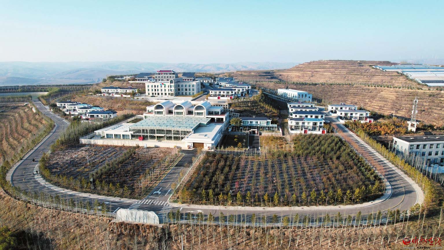 田巨峁村,一個昔日溝深坡陡的小山村,通過大力實施生態(tài)修復與特色產(chǎn)業(yè)發(fā)展,不僅高標準完成了7.5公里的通道綠化與8000畝的荒山造林,使主色調(diào)由“黃”轉(zhuǎn)“綠”,更在整溝治理后實現(xiàn)了整村搬遷。搬遷后的田巨峁村,依托特色經(jīng)濟林、京津風沙源治理等項目,建成3萬千瓦的光伏發(fā)電站、6000頭種豬養(yǎng)殖場以及千畝紅辣椒示范片,如今已是田疇廣布、年豐歲稔的繁榮景象。
