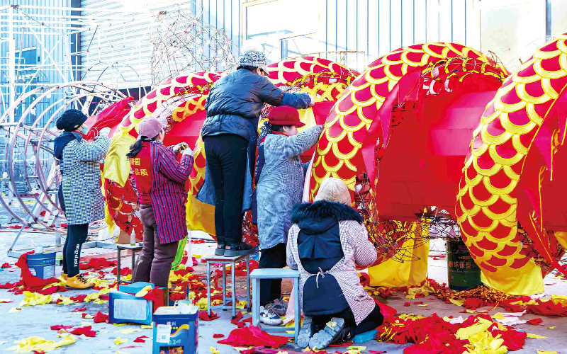 慶豐祥花燈廠工程師高海旺說:“我們在保留村里傳統(tǒng)的花燈制作技藝之余,還積極革新。今年龍元素花燈很受市場的追捧,不僅是省內(nèi),周邊省份也有很多訂單?!?/p>