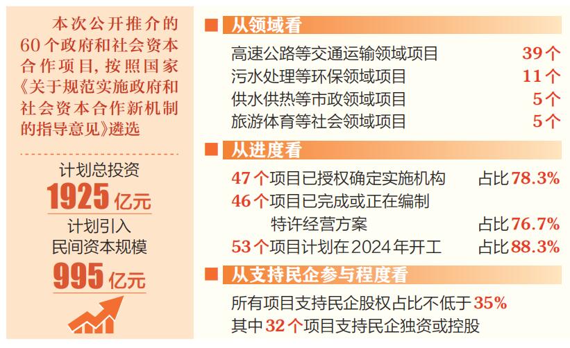 山西日報訊(記者姚毅)為進(jìn)一步拓寬民間投資領(lǐng)域,促進(jìn)民營經(jīng)濟(jì)發(fā)展壯大,根據(jù)省委、省政府部署,省發(fā)展改革委按季組織向民間資本推介項(xiàng)目,鼓勵民營企業(yè)以獨(dú)資控股參股等形式參與政府和社會資本合作項(xiàng)目。近日,省發(fā)展改革委會同省交通運(yùn)輸廳和相關(guān)市,遴選了60個擬實(shí)施的政府和社會資本合作項(xiàng)目,向民間資本公開推介。