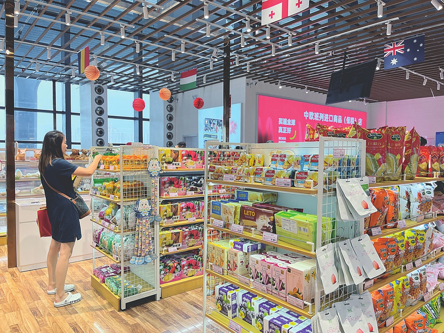 消費者在我省中歐班列進口商品(保稅)店選購商品。本報記者李若男攝