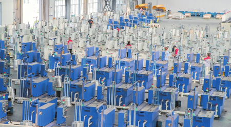 山西森鼎立設(shè)備制造有限公司生產(chǎn)車間內(nèi),工人正在生產(chǎn)高精度不銹鋼纖維。張理鋒攝