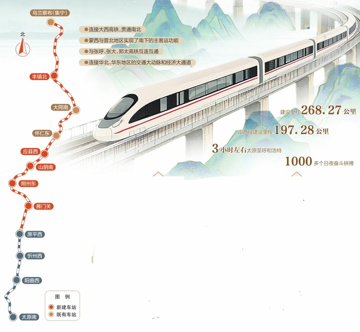 集大原鐵路鑄造了一個嶄新的鐵路“增強版”:連接大西高鐵,貫通南北,山西和內(nèi)蒙古兩地交流打通了快速通達重要通道,蒙西與晉北地區(qū)實現(xiàn)了南下的主客運功能,烏蘭察布、大同和太原鐵路樞紐地位得以強化和提升。