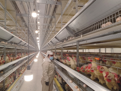 穿上無菌服,陳璐帶記者參觀雞舍。墻面是彩鋼夾芯板,耐腐、防火,保溫性能卓越,有效保障雞舍一年四季溫度恒定。雞籠表面是進口鋁鋅合金涂層,顯著降低破蛋率、污蛋率。雞舍內(nèi)安裝有智能環(huán)境控制系統(tǒng),實時顯示和控制雞舍內(nèi)溫度、濕度、二氧化碳濃度、光照、通風(fēng)等環(huán)境指標(biāo)?!耙坏┠骋豁椫笜?biāo)低于或者超過設(shè)定范圍,系統(tǒng)就會啟動各項設(shè)備,直至指標(biāo)恢復(fù)正常?!标愯凑f。