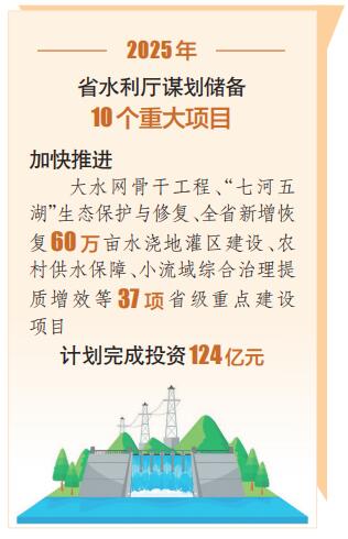 水資源的有效管理與利用是推動(dòng)高質(zhì)量發(fā)展的重要基礎(chǔ)。今年,省水利廳圍繞水資源調(diào)配、防洪減災(zāi)、農(nóng)村供水、灌區(qū)現(xiàn)代化改造、河湖生態(tài)修復(fù)、地下水超采治理、水土保持等重點(diǎn)工作,謀劃儲備10個(gè)重大項(xiàng)目,加快推進(jìn)大水網(wǎng)骨干工程、“七河五湖”生態(tài)保護(hù)與修復(fù)、全省新增恢復(fù)60萬畝水澆地灌區(qū)建設(shè)、農(nóng)村供水保障、小流域綜合治理提質(zhì)增效等37項(xiàng)省級重點(diǎn)建設(shè)項(xiàng)目,計(jì)劃完成投資124億元,為全省高質(zhì)量發(fā)展提供有力的水安全保障。