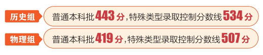2025年我省普通高校招生本科各類錄取最低控制分數(shù)線和特殊類型錄取控制分數(shù)線,歷史組:普通本科批443分,特殊類型錄取控制分數(shù)線534分;物理組:普通本科批419分,特殊類型錄取控制分數(shù)線507分。