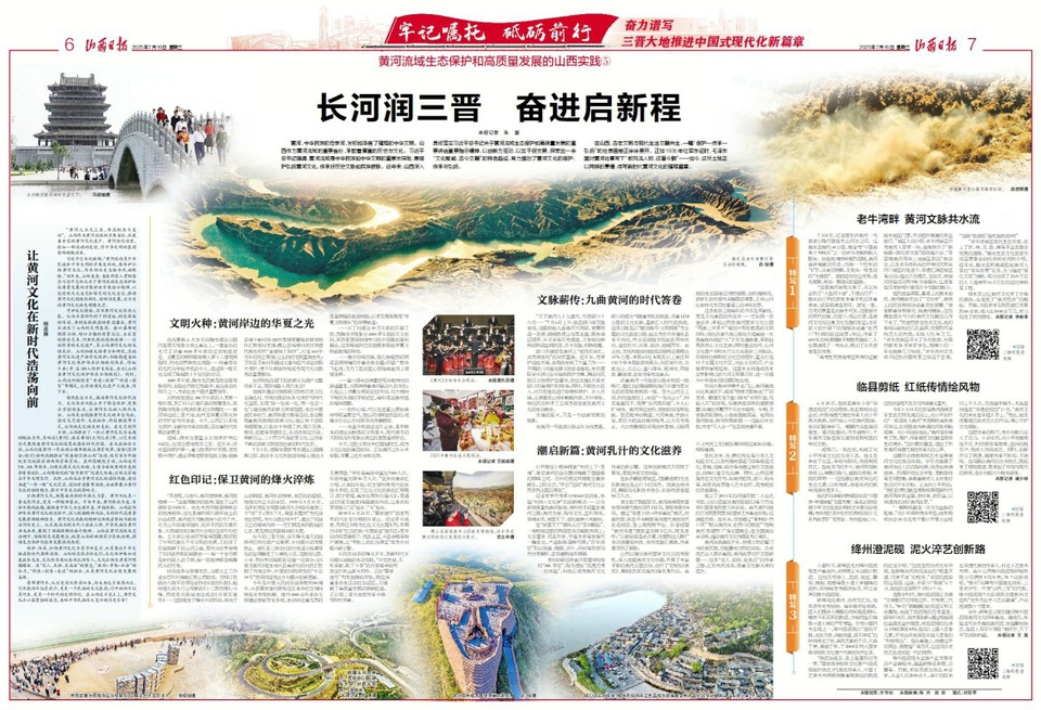 在山西,古老文明與現(xiàn)代生活交融共生,一幅“保護(hù)—傳承—弘揚(yáng)”的壯美畫(huà)卷正徐徐展開(kāi)。正如1936年紅軍東征時(shí),毛澤東面對(duì)黃河壯景寫(xiě)下“數(shù)風(fēng)流人物,還看今朝”——如今,這片土地正以同樣的豪情,續(xù)寫(xiě)新時(shí)代黃河文化的璀璨篇章。