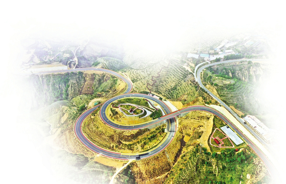 俯瞰永和縣黃河一號(hào)旅游公路(望海寺段)如蛟龍盤(pán)踞,氣勢(shì)恢宏。本報(bào)記者劉通攝