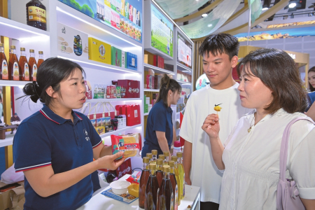 8月21日,忻州展區(qū),市民正在品嘗神池月餅,了解胡麻油制作過(guò)程。本報(bào)記者申晉光攝