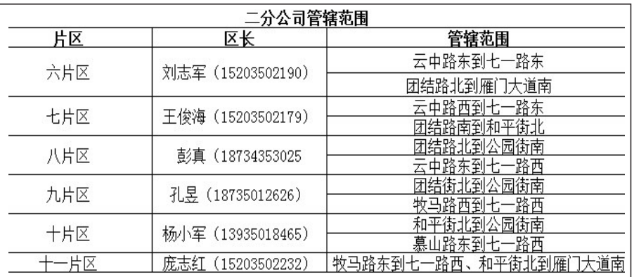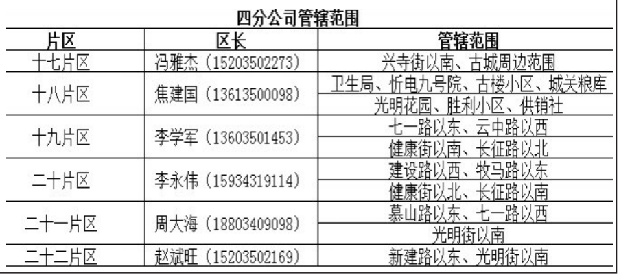 近期,忻州熱力有限公司收到很多用戶(hù)上門(mén)反饋,普遍反映客服熱線占線時(shí)間太長(zhǎng),無(wú)法及時(shí)反映供熱情況,導(dǎo)致用戶(hù)遇到供熱相關(guān)問(wèn)題或故障無(wú)法及時(shí)反饋。根據(jù)群眾目前遇到的困難,忻州熱力有限公司公布了22個(gè)供熱片區(qū)及負(fù)責(zé)人聯(lián)系方式,以便用戶(hù)及時(shí)反饋。
