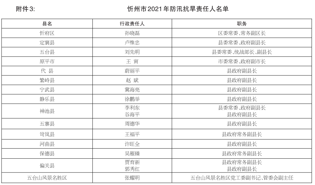 3.忻州市2021年防汛抗旱責(zé)任人名單