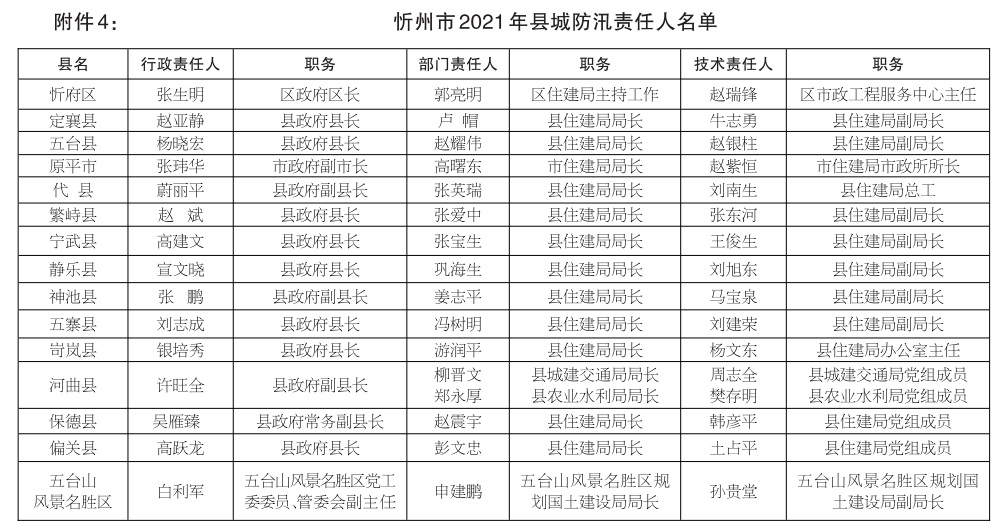 4.忻州市2021年縣城防汛責(zé)任人名單