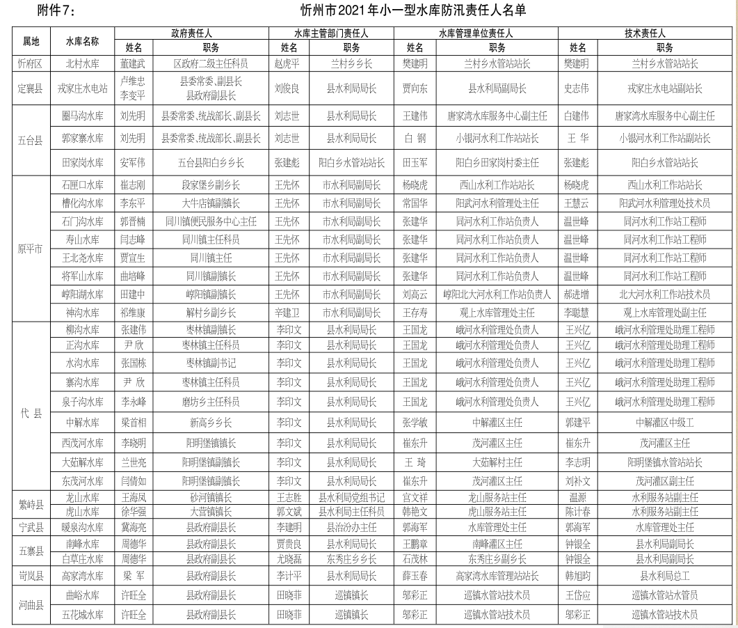 7.忻州市2021年小一型水庫(kù)防汛責(zé)任人名單