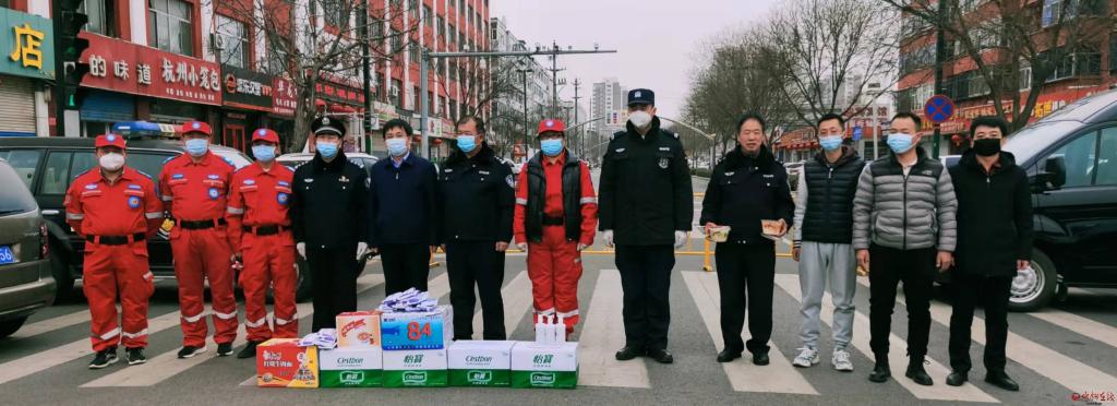 圖為向新建東街口抗疫一線(xiàn)人員送去防疫物資