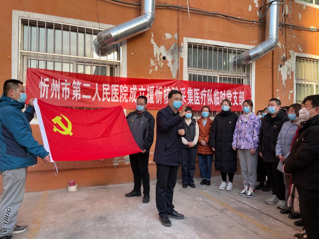哪里有任務,哪里就有黨旗飄揚。在疫情防控一線成立臨時黨組織,是忻州市第二人民醫(yī)院黨委堅持黨建引領,充分發(fā)揮基層黨組織戰(zhàn)斗堡壘作用和共產(chǎn)黨員先鋒模范作用全力投身抗擊疫情防控工作的一個縮影,也是全體支援人員聽黨指揮、不負初心的使命擔當。自忻府區(qū)發(fā)生輸入性疫情以來,該院于2月23日和25日緊急抽調101名醫(yī)療骨干隊員趕赴忻府區(qū)支援核酸采集任務。連日來,全體支援人員克服困難,全力以赴,24小時堅守在抗擊疫情第一線,為打贏這場疫情阻擊戰(zhàn)貢獻著二院力量。