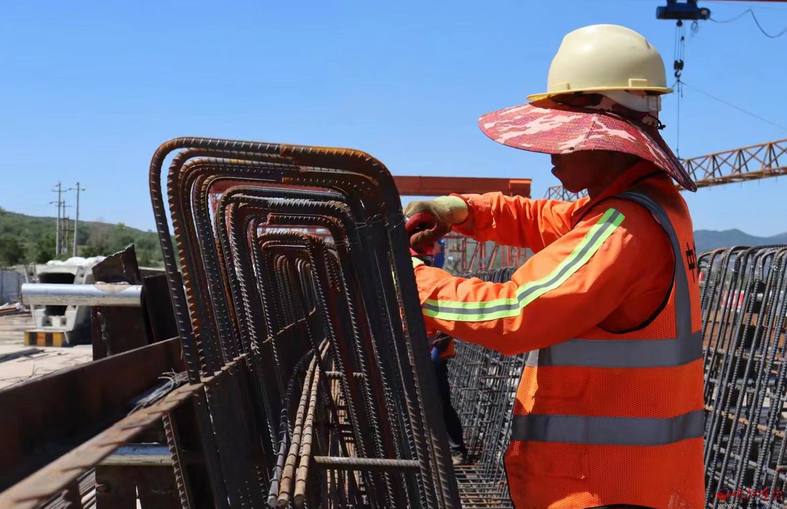 在箱梁預(yù)制現(xiàn)場(chǎng),吊樁機(jī)、彎筋機(jī)、攪拌車的轟鳴聲不絕于耳?!罢麄€(gè)工程將使用140片箱梁,目前已完成34片的制作,按照工程要求,預(yù)計(jì)將在8月15日前全部制作完成,但我們的目標(biāo)是力爭(zhēng)提前完成,為工程如期竣工做好保障?!焙顾鞯枚伎毂牪婚_眼的負(fù)責(zé)箱梁工程的郭總信心十足地告訴記者。