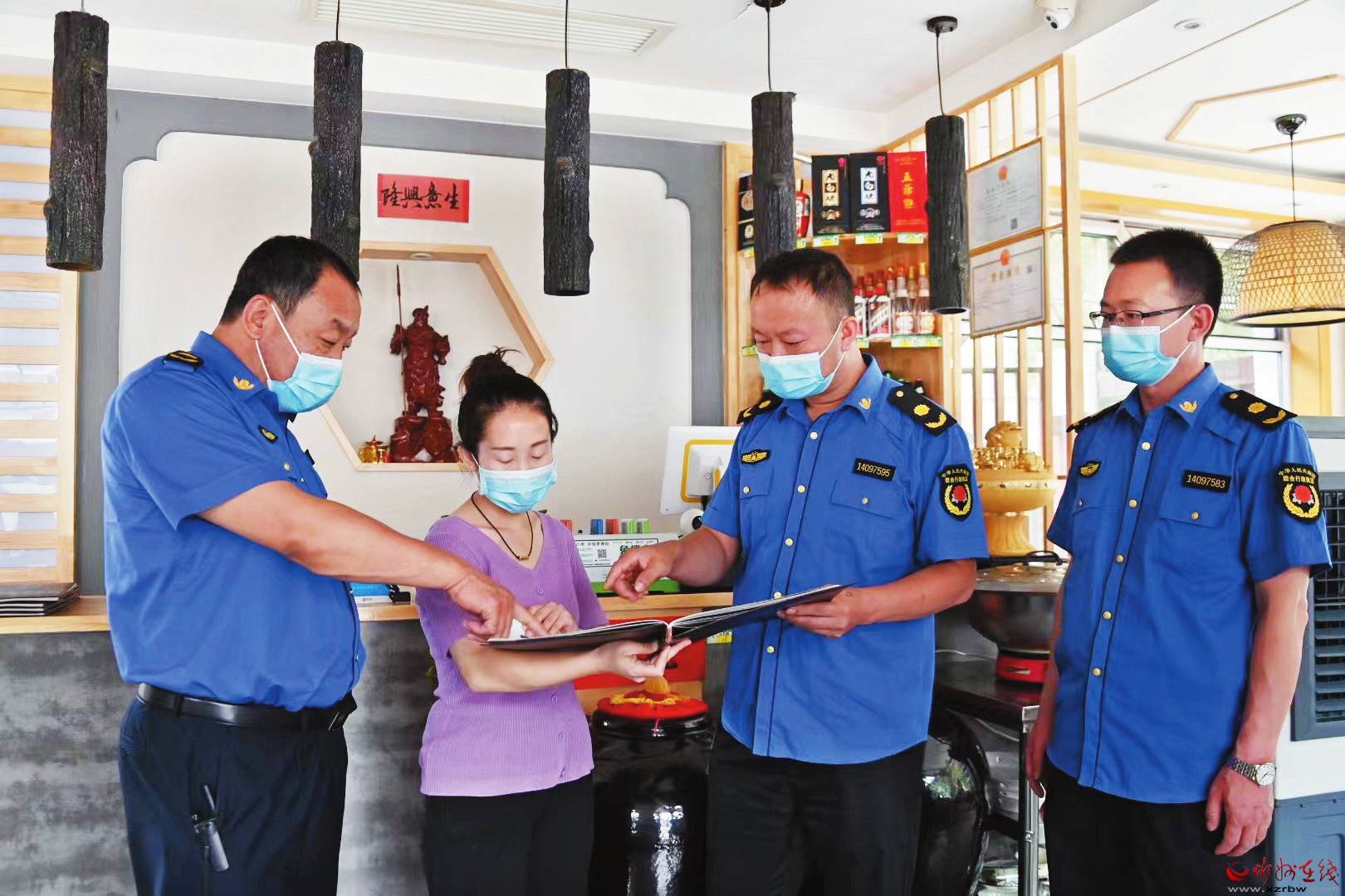 五臺山綜合行政執(zhí)法人員在飯店進行執(zhí)法檢查。宮愛文 攝