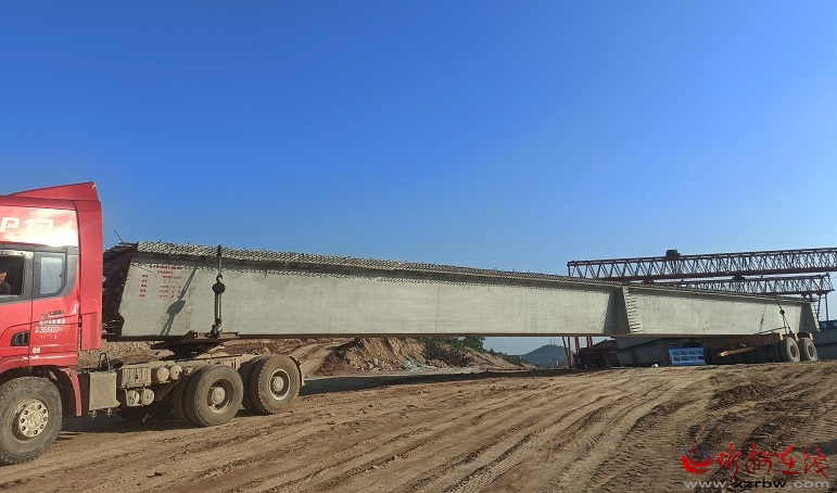 徐凹菱形立交橋是太忻大道二標(biāo)段全線第一個預(yù)制梁架設(shè)的橋梁,位于忻府區(qū)徐凹村,徐凹菱形立交橋首片架設(shè)梁為右幅5-1邊梁,底板寬1米,高1.6米,頂板寬2.45米,梁重100噸,采用吊車架梁,當(dāng)天下午,徐凹菱形立交橋箱梁經(jīng)過起吊,運(yùn)梁一系列作業(yè),平穩(wěn)地落在橋梁支座上,現(xiàn)場一片歡呼。