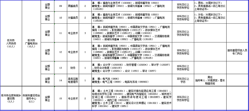 1.年齡要求:忻州日?qǐng)?bào)社、忻州市廣播電視臺(tái)08、09、10男、女播音員崗位18周歲及以上、30周歲及以下(即1991年8月26日至2004年8月26日期間出生);其他崗位18周歲及以上、35周歲及以下(即1986年8月26日至2004年8月26日期間出生)。