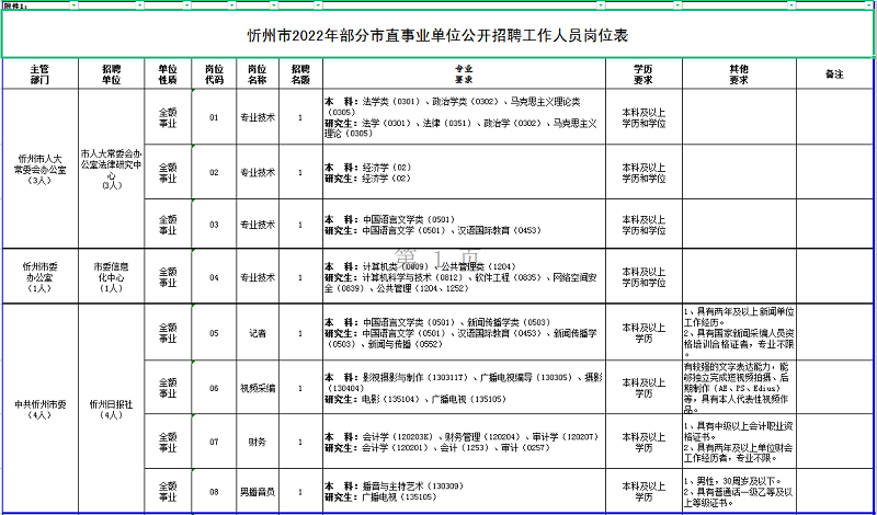 附件:1.忻州市2022年部分市直事業(yè)單位公開招聘工作人員崗位表